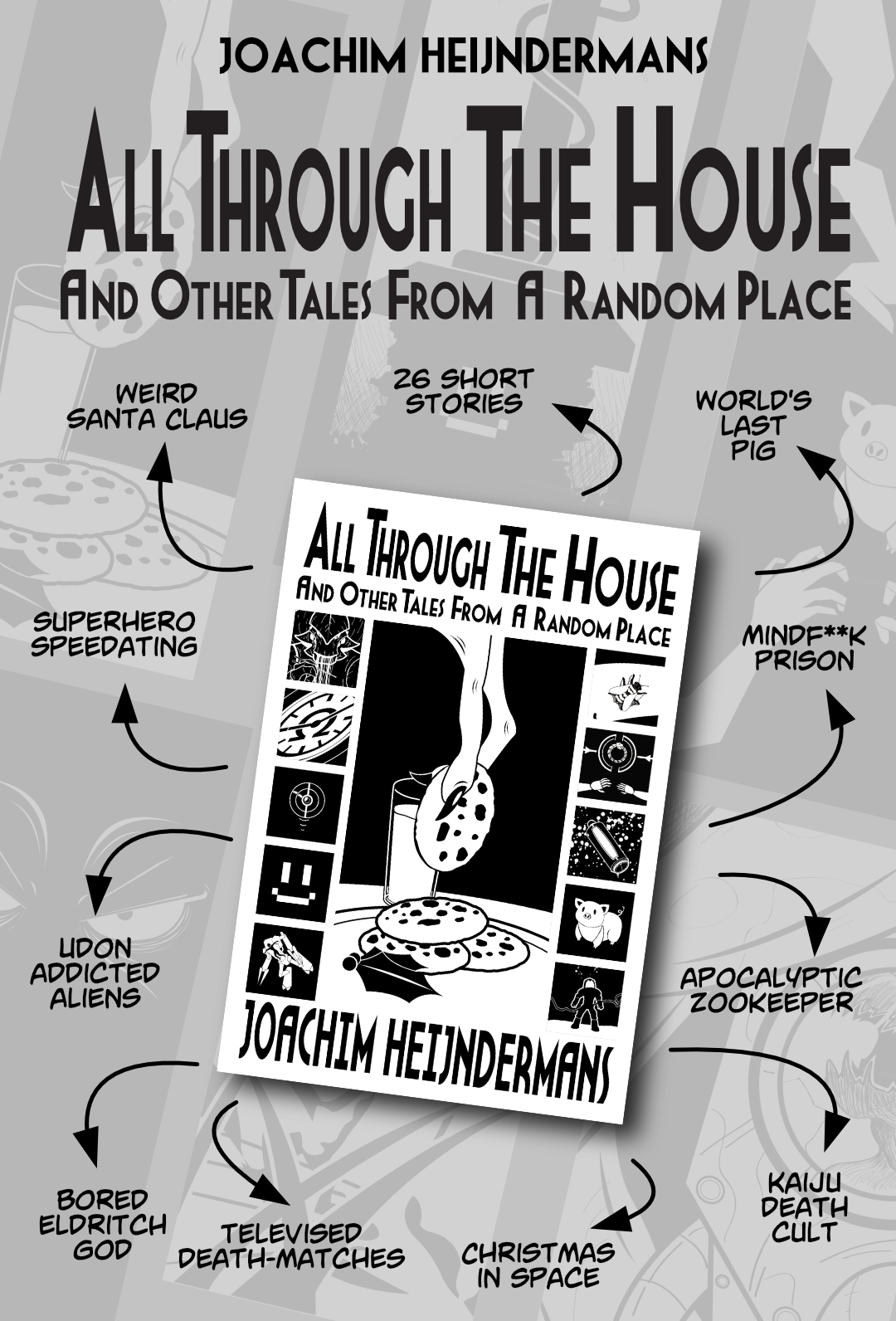 Two dark Christmases, two bored eldritch nightmares, tigers and wolves on the prowl, robots out of their league and on their way out, a transfer student going out on a limb, humans at their worst and their best, religious followers of a giant monster and the last pig in the world. These are some of the stories found in this first collection of short stories by Joachim Heijndermans. Twenty-six stories, one seeing its first English translation with this publication, have been gathered from a random place and collected in this book, including such stories as ‘All rough the House’, ‘My Book Report on ‘Starlight’’, ‘Cubed’ and ‘ The Scars to Prove It’. Enter, and see what can be found in a Random Place.
